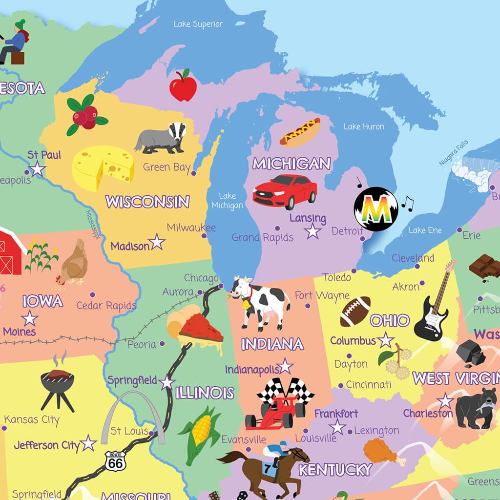 Michigan Map For Kids Zoomie Kids Michigan Map Illustration On Canvas Print | Wayfair: They also raised the possibility that more House or Senate districts would have to be redrawn to accommodate the revised maps. A three-judge panel ruled in December that Michigan’s first . A Michigan father of three shot and wounded his ex-girlfriend’s new beau after he dropped off gifts for his kids on Christmas, according to prosecutors. Deandre Patrick Lawrence, 23, was .